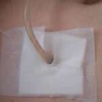 Michał jest więc, cały czas karmiony przez PEG-a – a jego bliscy już pogodzili się z tym, że nie może jeść sam… i nie widzą lepszego rozwiązania: “Jesteśmy już na tyle przyzwyczajeni, że wszystkie czynności wykonujemy właściwie automatycznie. Pielęgnacja nie sprawia nam żadnych problemów… tyle tylko, że Michałowi zdarza się zadrapać sobie skórę wokół PEG-a i wtedy trzeba ją oczyścić. Natomiast na co dzień, skóra jest sucha… bez żadnych nieczystości – po prostu tam nic nie podcieka. To jest dziurka, która jest czysta. Trzeba to miejsce oczywiście codziennie pielęgnować… Ja – jeżeli tam się nic nie dzieje – przemywam je samą wodą. Podkładamy jeszcze gazik, żeby mieć pewność: że nie powstanie odleżyna… spowodowana samym tym guziczkiem, który przylega do skóry.”